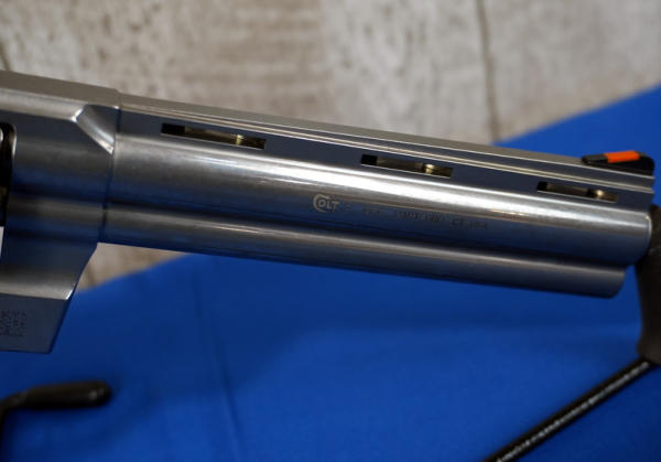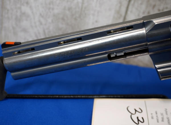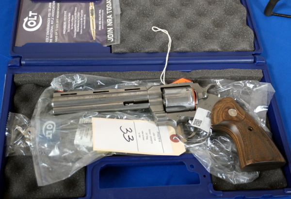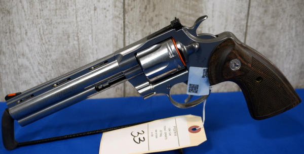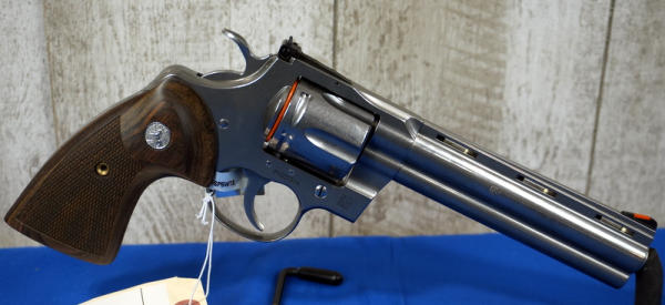6" VR-Stainless barrel; red ramp front sight; wood checkered grips; 6-shot swing out cylinder; mint & unfired; factory hard case; USA; SN#PY027814; A-196