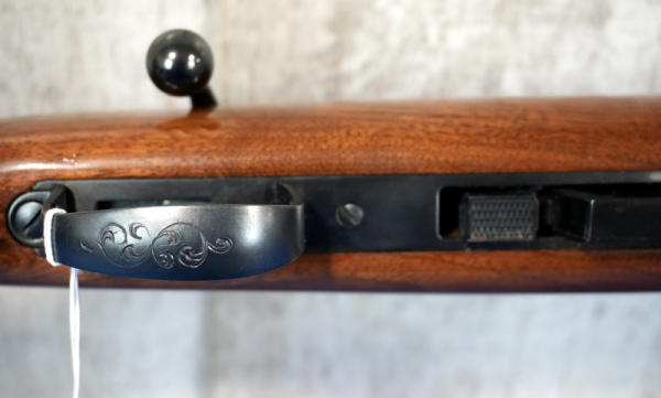 24" BBL; smooth action; removable magazine; rosewood forearm cap, pistol grip cap & buttplate; great looking wood and nice bluing; has factory scroll engraving on the receiver; scope blocks; mfg. 1972-84; USA: SN#1281842; A-207