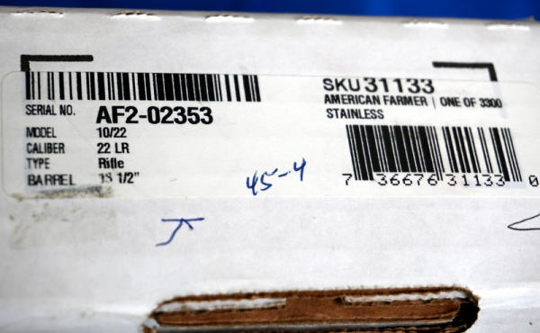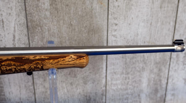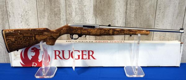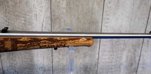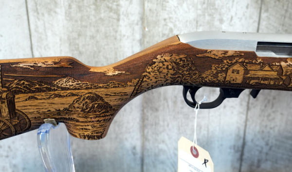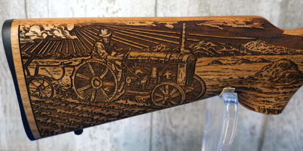 18.5" Stainless Barrel; highly engraved wood stock w/farm scene & tractor; removable magazine; factory box; 1 of 3300 made; USA; SN#AF2-02353; A-185
