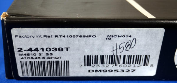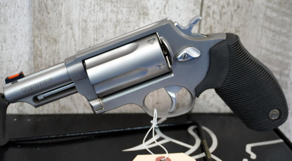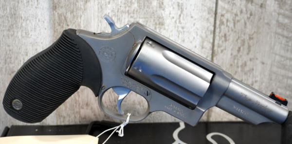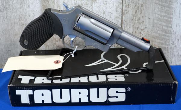 3" Stainless Barrel; hy-vis front sight; rubber grips; 5-shot swing out cylinder; 2.5" for .410ga.; used; factory box; Brazil; SN#DM995327; A-194