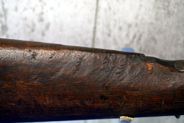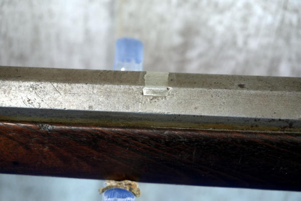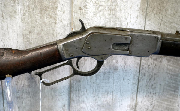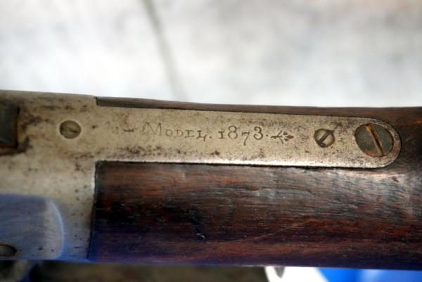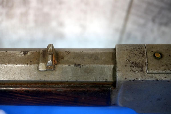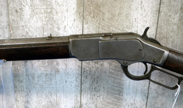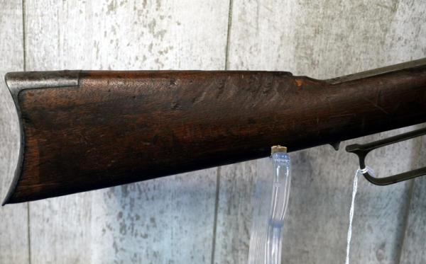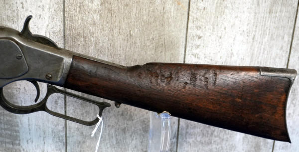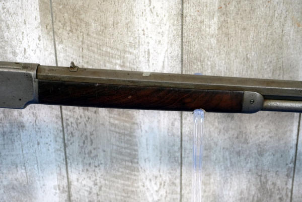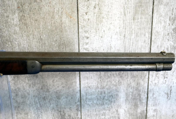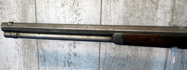 21.5" Oct. BBL w/full length receiver tube; bluing is nearly all gone; action is stiff and needs some adjusting and oil; wood has marks on top of stock; dust panel is there but very loose; mfg. 1892; USA; SN#444714B; NO TRANSFER needed on this firearm