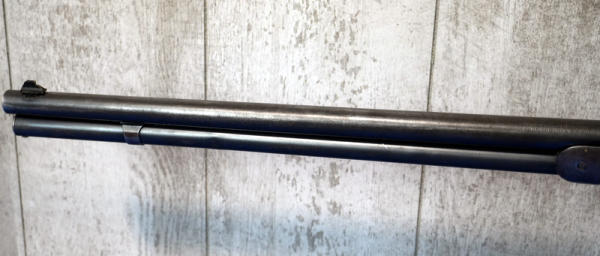 26" Rnd. BBL w/full length receiver tube; bluing is gone on receiver, barrel looks ok; smooth action; wood has use marks and normal wear for it's age; USA; SN#375883; A-207