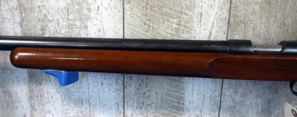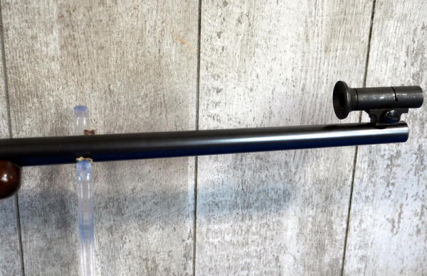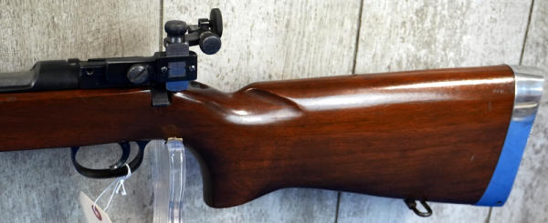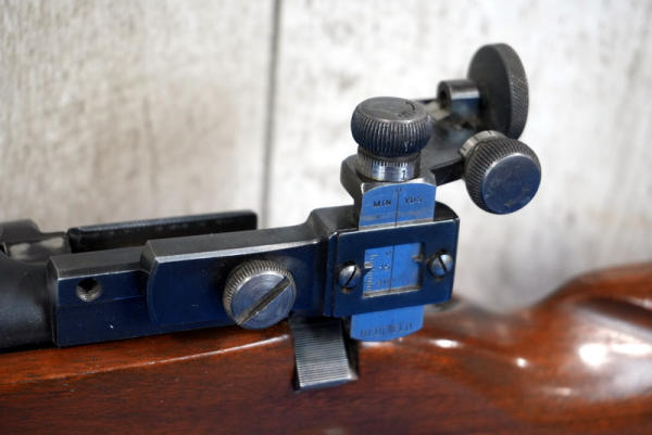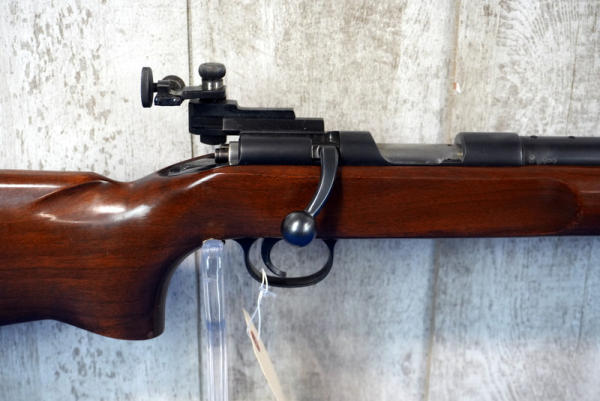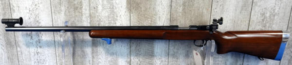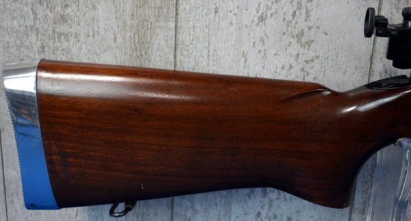 28" BBL; smooth action; nickel finish butt plate w/folding armpit rest; removable magazine; Redfield Olympic target sights; nice wood; USA; SN#11941; A-207