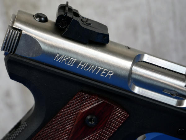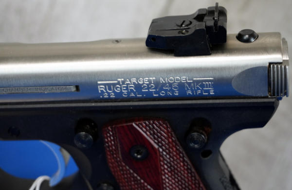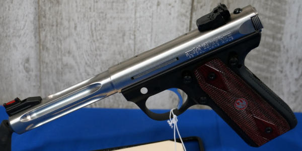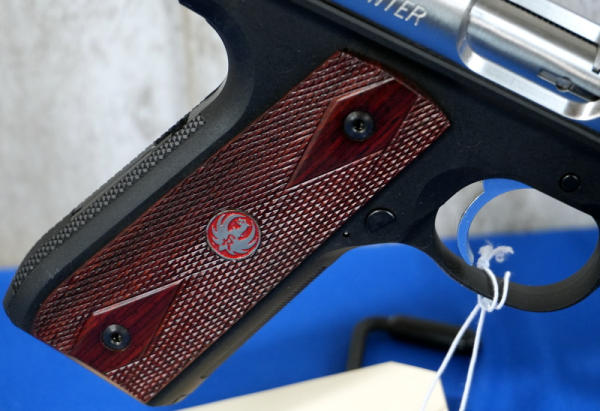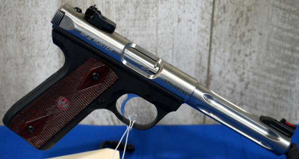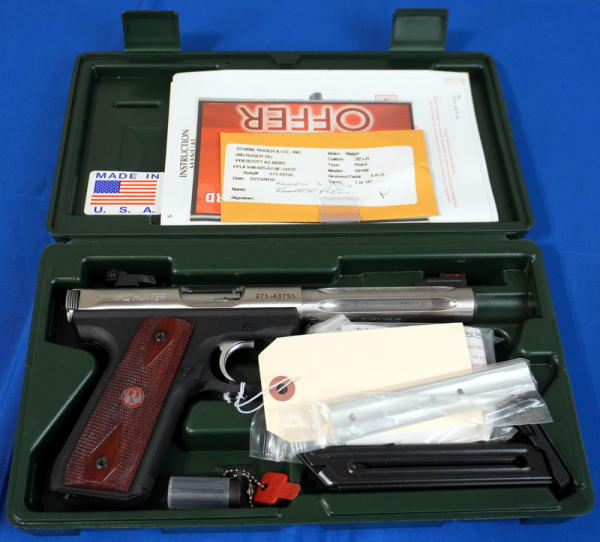 5.5" Stainless Fluted Barrel; hy-vis front sight; checkered grips w/red eagle logo; 2-magazines; factory hard fitted case; mint & nice gun; USA; SN#271-43755; A-196