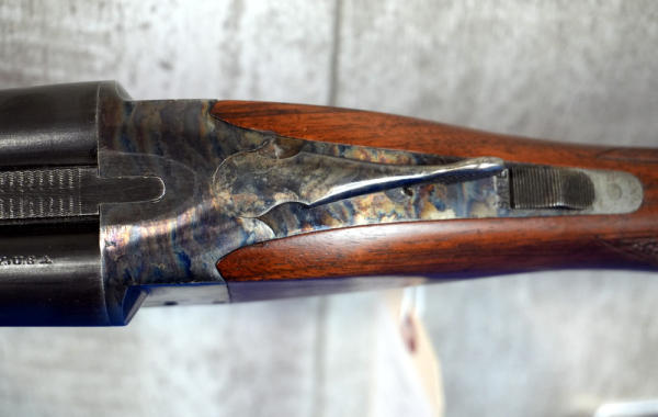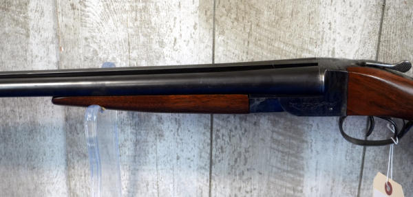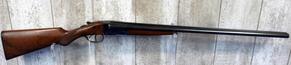 28" BBL's; easy break action; wood is near perfect; case hardened receiver; has a small ding in the right barrel towards muzzle & a scratch on left side bout middle; two triggers; Left-FC, Right-MC; very nice looking gun; Box Lock Version; USA; SN#F163437; A-211