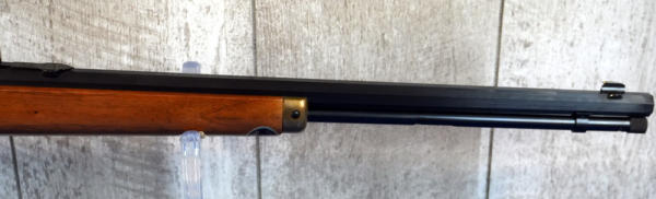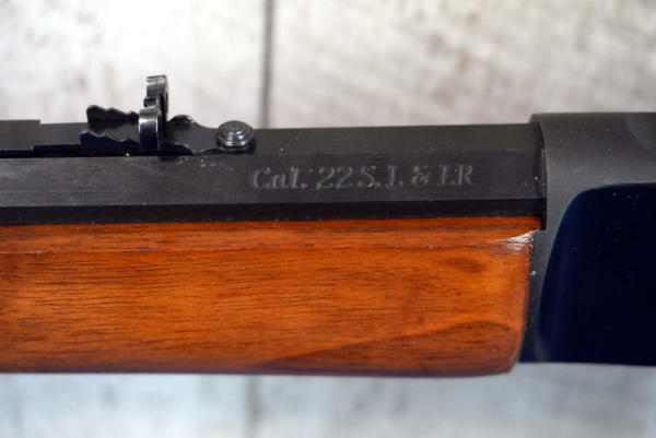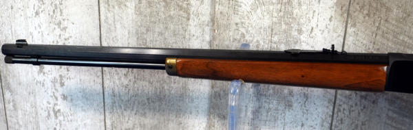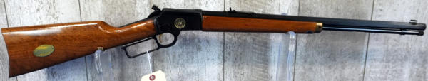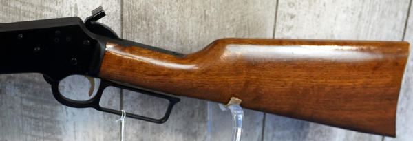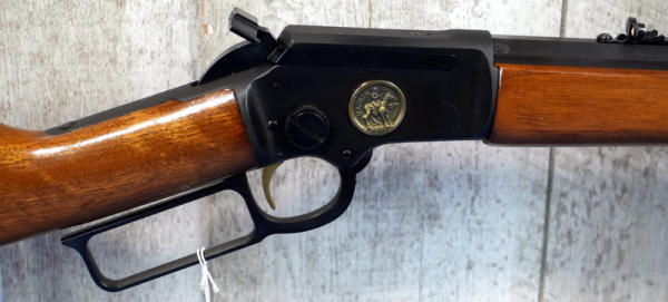 19.75" Oct. BBL; smooth action; gold trigger; near mint condition; has Walnut stick on bottom of forearm still; tag on stock & emblem on side of receiver; hammer extension; USA; SN#7824; A-196