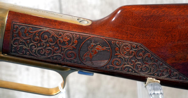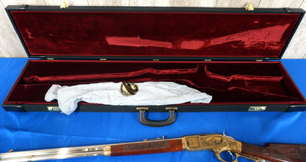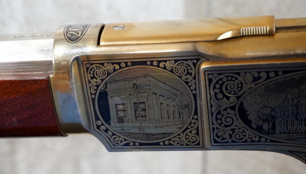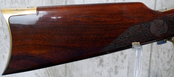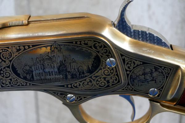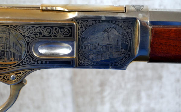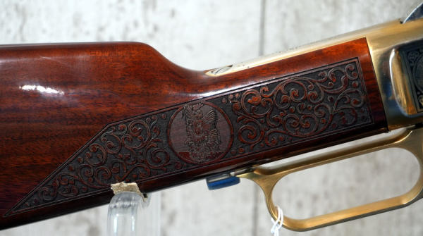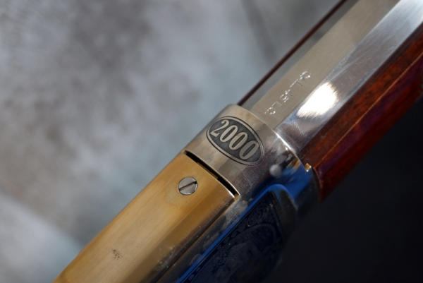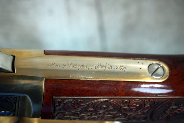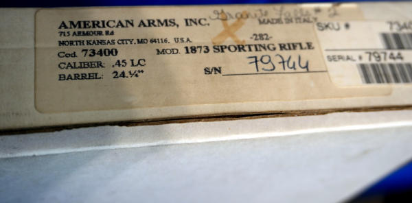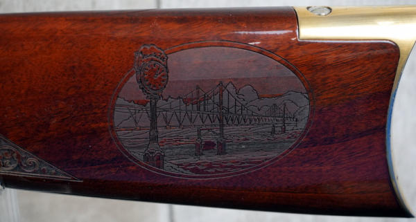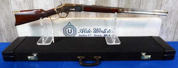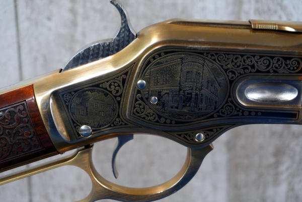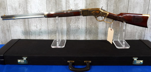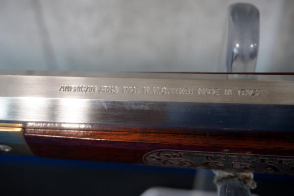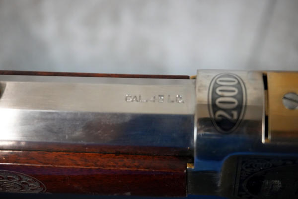 Mint & unfired; Highly engraved by A&A Engraving of Rapid City, SD; 24" Oct. Stainless Barrel; bronze finish to receiver and other accents; jeweled hammer; comes w/hard fitted case & original box; made by American Arms & Uberti; this is #2 of only 10 mfg.!; Beautiful looking firearm!; Italy; SN#79744; A-196