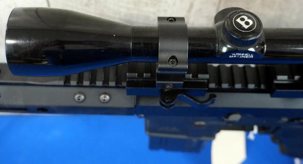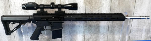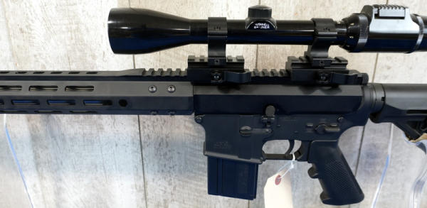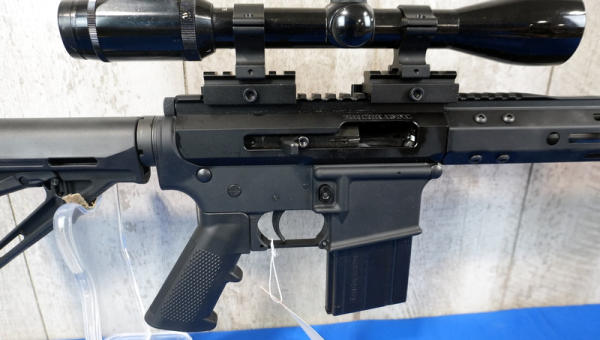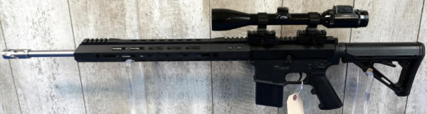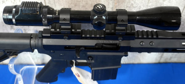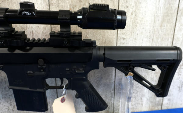 only the 2nd .17HMR AR we've ever sold! 20" Stainless Barrel w/2" flash hider; 1/9 Twist; extendable stock; one magazine; Bushnell Banner scope; mint & unfired!; USA; SN#24186675; A-182