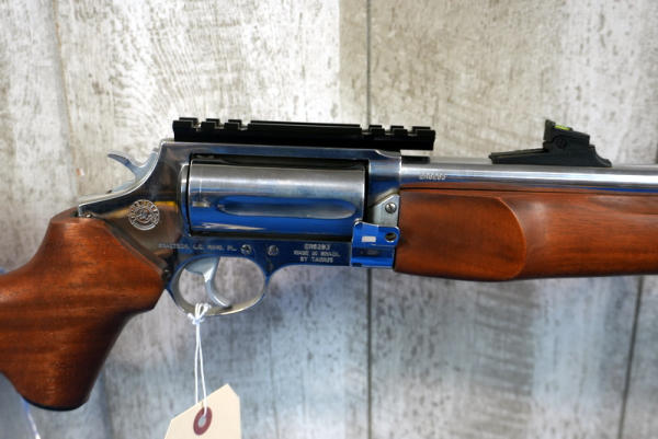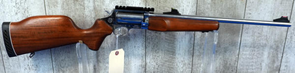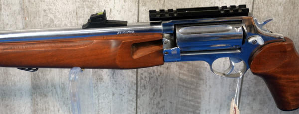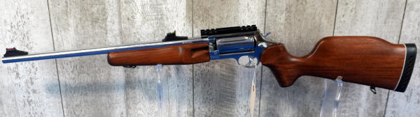18.5" Stainless barrel; wood stock & forearm; 5-shot swing out cylinder; picatinny rail; hy-vis sights; used but like new shape; transferred as a rifle; Brazil; SN#ER6283; A-206