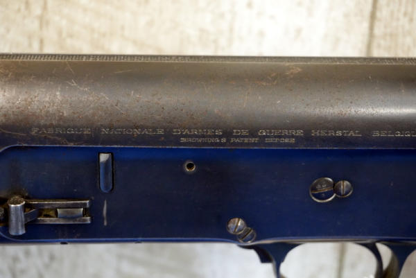 27" Solid Rib BBL; receiver has some spotting on left side; bluing overall is decent; wood stock has nice checkering w/some field wear; FC; Belgium; SN#45828; A-176