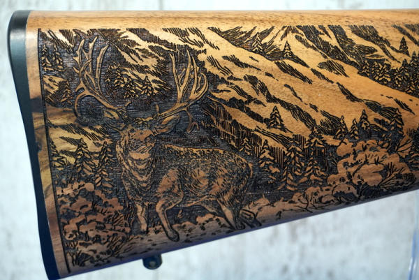earlier in the auction we had the stainless version, this is the same only all Blued; 18.5" BBL; highly engraved wood stock; mint & unfired; removable magazine; factory box; USA; SN#0023-20346; A-210