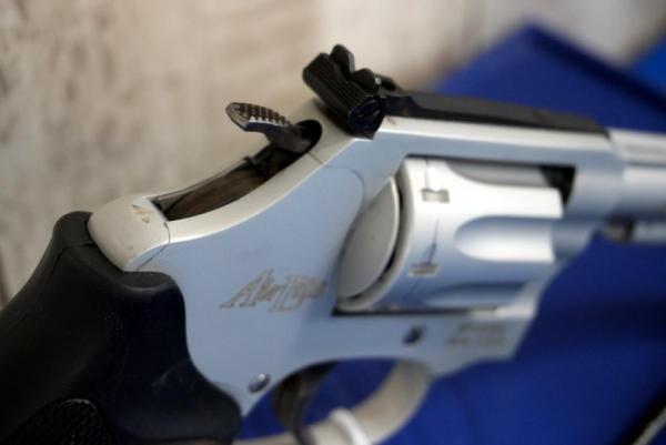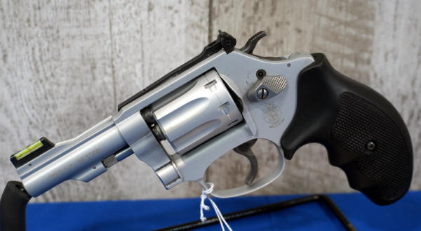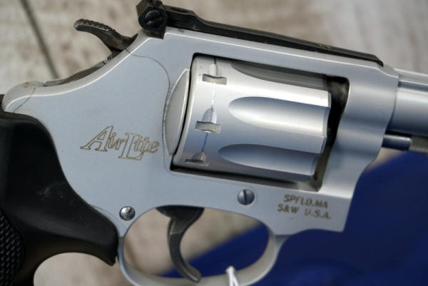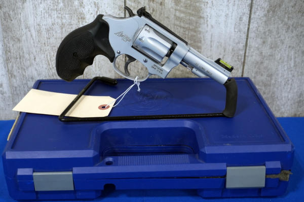 3" Barrel; extremely lightweight; rubber checkered finger groove grips; 8-shot swing out cylinder; hy-vis front sight; used; factory hard case; USA; SN#CHB8595; A-183
