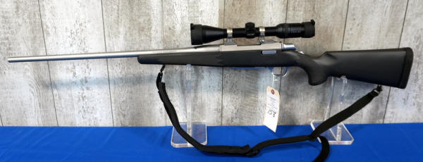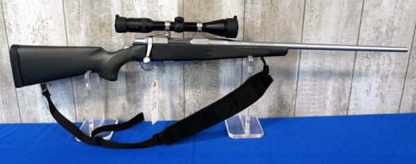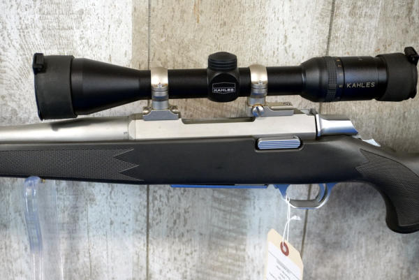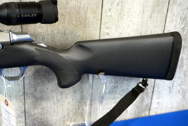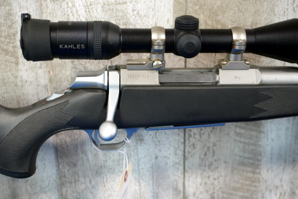 23" Stainless barrel; smooth action; sling; Kahles 3-9x42 scope; black synthetic stock; very nice used condition; Japan; SN#02593MX351; A-194