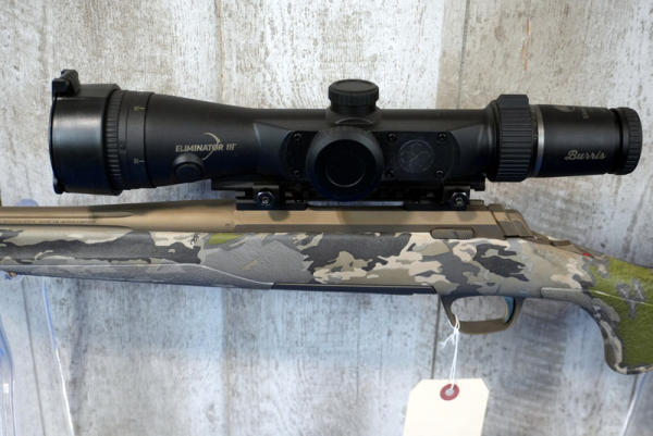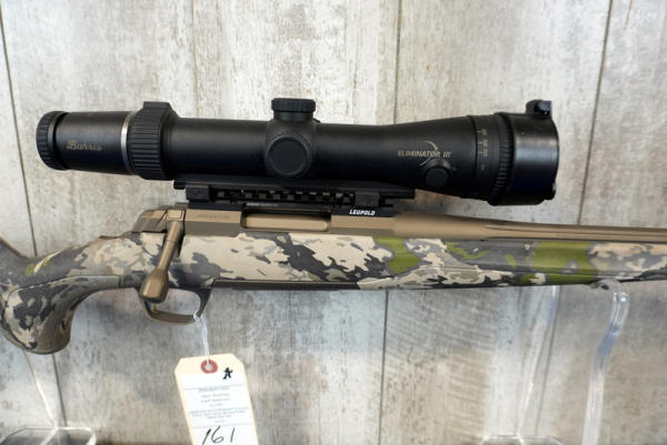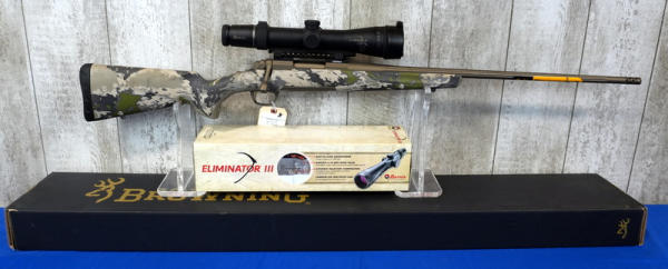 24" Fluted Bronze Finish Barrel w/2" Flash hider; camo synthetic stock; removable magazine; smooth action; factory box; high end Burris Eliminator III 3-12x44mm scope w/box; like new used condition; Japan; SN#JP64382YY354; A-210