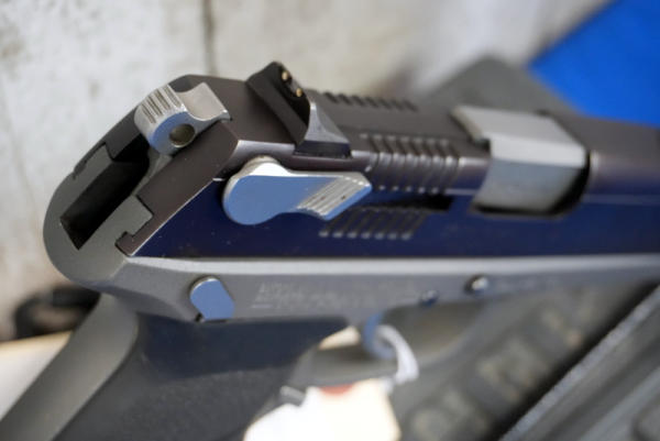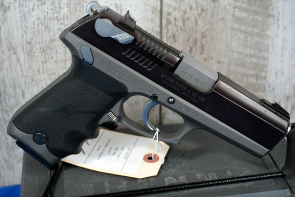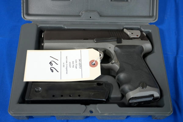 4.25" Stainless barrel; two tone w/different color slide; rubber grips; 2-magazines; night sights; factory hard case; used; USA: SN#341-20751; A-190