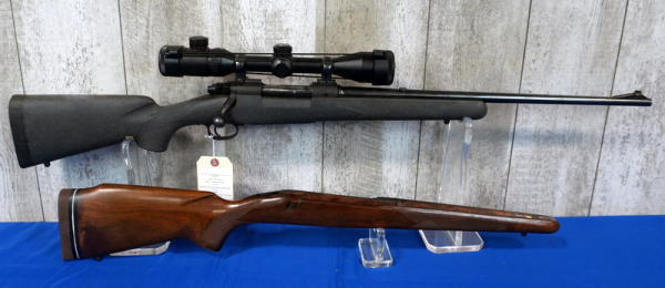 22" BBL; action is alittle gummed up, needs a cleaning; aftermarket synthetic stock, but includes the original wood stock as well; Barska 4-12x42 scope; used; USA; SN#142618; A-207
