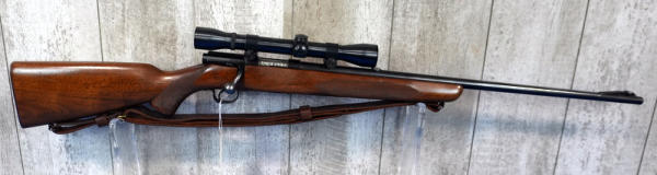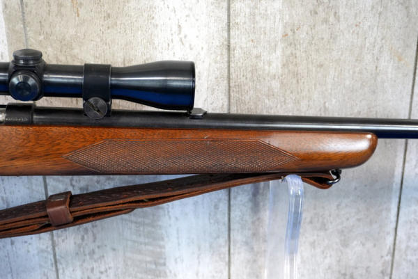 this is the Deluxe config; smooth action; 24" BBL; leather sling; removable magazine; Weaver K4 scope; very nice wood; USA; SN#20471A; A-194