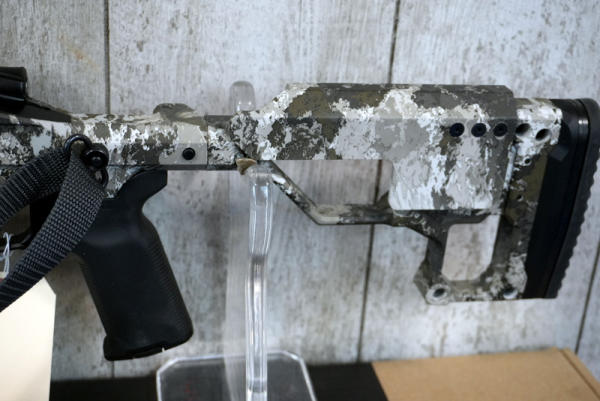 27" Carbon Fiber BBL w/3" Flash hider; Veil Camo Stock; folding stock; picatinny rail w/scope rings; sling; factory box; removable magazine; NEW; rubber coated pistol grip; great looking gun! USA; SN#CV99036; A-210