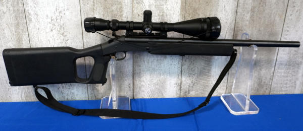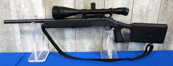 22" Bull BBL; black synthetic pistol grip Survivor stock; Simmons 6-24x50 scope; sling; like new condition; USA; SN#NU253490; A-176