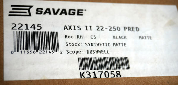 22" Varmint BBL; mint & unfired; factory box; Bushnell 4-12x40 scope; synthetic stock w/camo sticks design; removable magazine; USA; SN#K317058; A-202