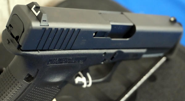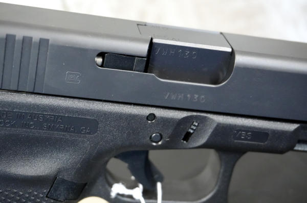 4" BBL; black synthetic frame; night sights w/rear white outline; 3-magazines; factory hard case; mint & unfired; Austria; SN#VWH130; A-205