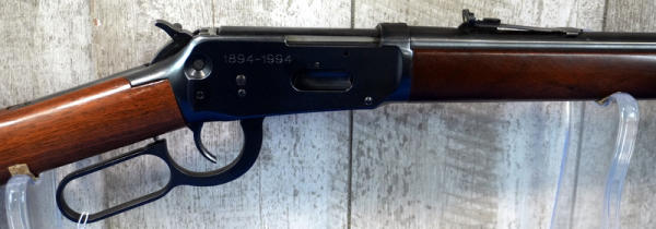 16" BBL; smooth action; looks nearly unfired, has a couple minor marks from storage; marked "1894-1994" on right side of receiver; nice gun; USA; SN#6145427; A-207