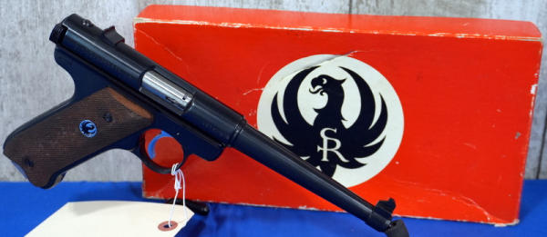 6" Tapered BBL; appears to be near mint & unfired; wood checkered grips; original red box; nice 50+ year old Ruger!; USA; SN#11-63614; A-210