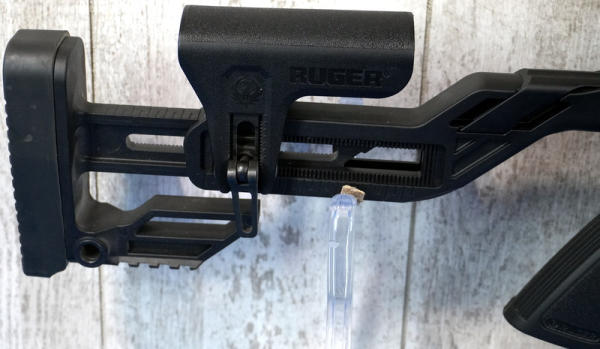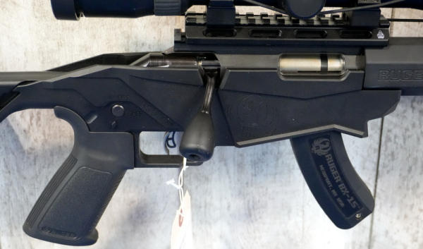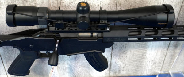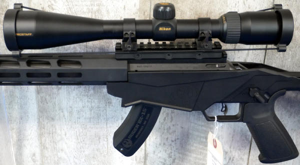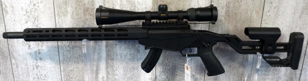 18" Threaded BBL; adjustable stock; one large capacity magazine and 4 standard ones; Nikon Prostaff 4-12x40 scope; used but very clean; USA; Sn#840-09619; A-182