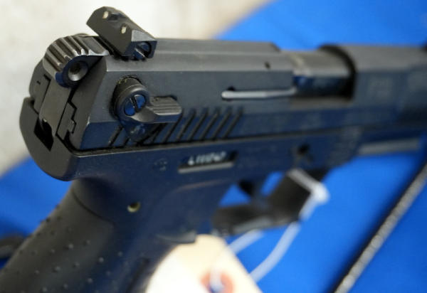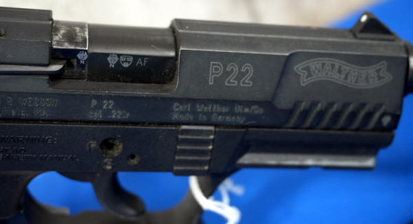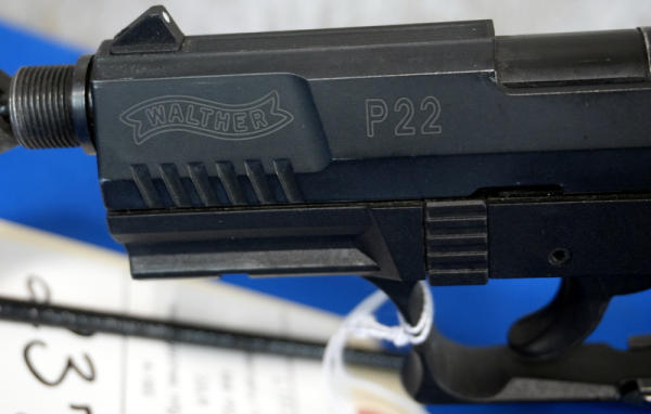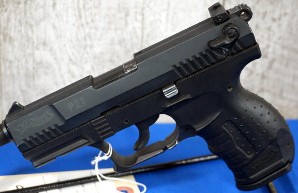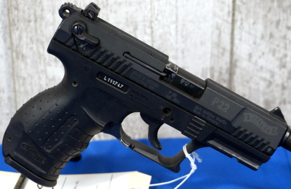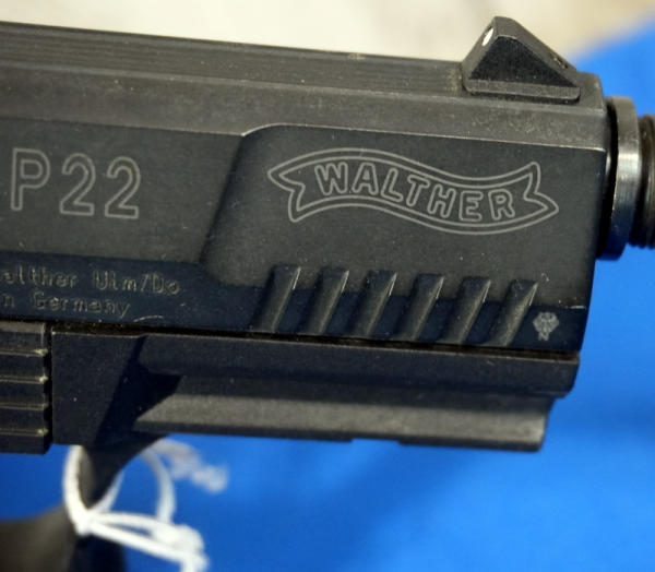 4" BBL, threaded; nothing on the muzzle; black synthetic frame; night sights; two magazines; marked Walther and mfg. by S&W; Germany; SN#L111747; A-185