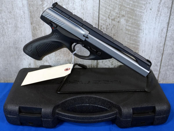 6" Stainless barrel; black synthetic grips; full length picatinny rail; two magazines; rear white outline sight; mint & unfired; factory hard case; USA; SN#P83336; A-194