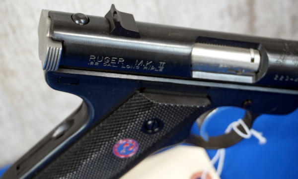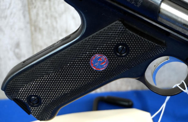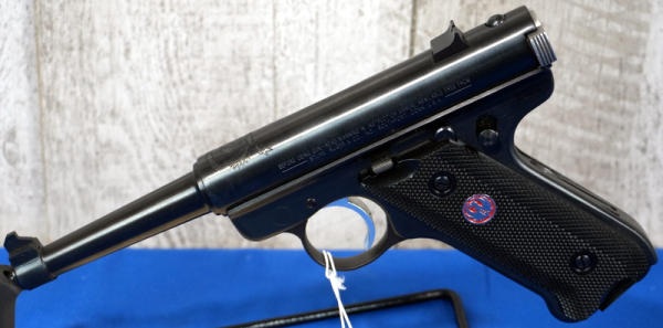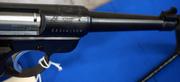 4.75" Tapered BBL; plastic checkered grips w/Red Eagle logo; looks unfired; no box; mfg.1999 which was the first year of using the Red Eagle Logo on the Mark Series; USA: SN#223-41564; A-194
