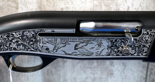 28" VR-BBL; highly engraved receiver w/Duck & Pheasant Graphics; used but very clean; gold trigger; 3"; MC; Japan; SN#S2935929; A-186