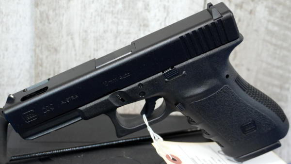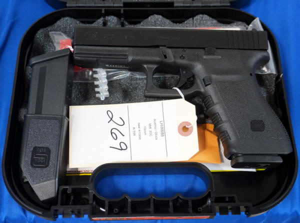 4.5" BBL; black synthetic frame; night sights w/rear white outline; two magazines; factory hard case; Mint & unfired; Austria; SN#LHW688; A-196