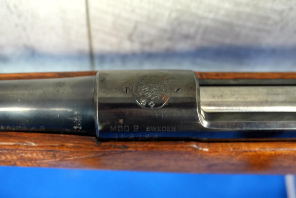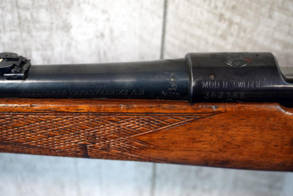 21" BBL is marked Husqvarna and top of receiver is marked S&W; smooth action; wood was refinished at one time and a crack has been repaired on the forearm; Sweden; SN#362186; A-203