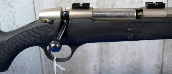 27" Stainless Oct. to Rnd. Barrel; black synthetic stock; factory box; looks unfired, could use a cleaning; scope blocks; hy-vis front sight; smooth action; USA; SN#0005000; No Transfer Needed