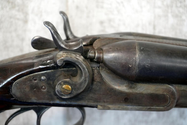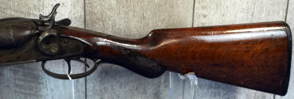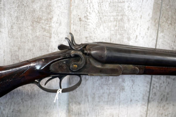 30" BBLs; two triggers and both mechs work; easy break action; stock has been repaired; has wear and looks like the wood was refinished along time ago; not much bluing; includes a leather scabbard that is pretty rough; SN#176395; No transfer needed