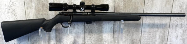 21" Varmint BBL; smooth action; black synthetic stock; removable magazine; has a few scratches on the barrel; Bushnell scope; clean gun; Canada; SN#0458170; A-188