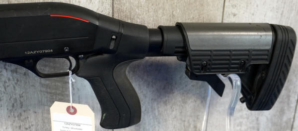 18" Rnd. BBL: smooth action; black synthetic furniture; ATI extendable stock; pistol grip; 2.75" & 3"; CC; Turkey; SN#12AZY07904; A-186