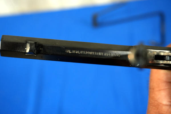 5.5" Oct. BBL; very clean w/case hardened receiver & brass straps; wood grips; engraved cylinder; SN#D01503; No Transfer needed