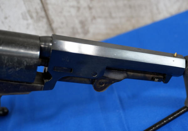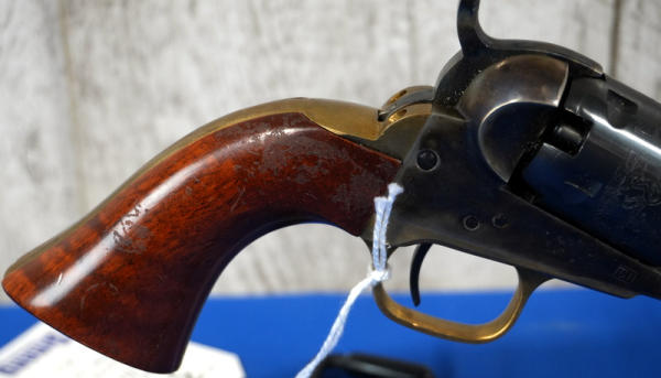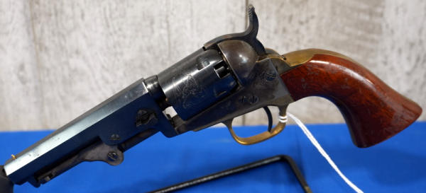 4" Oct. BBL; case hardened receiver w/brass straps; nice and clean; engraved cylinder; wood grips; SN#A94174; No Transfer Needed