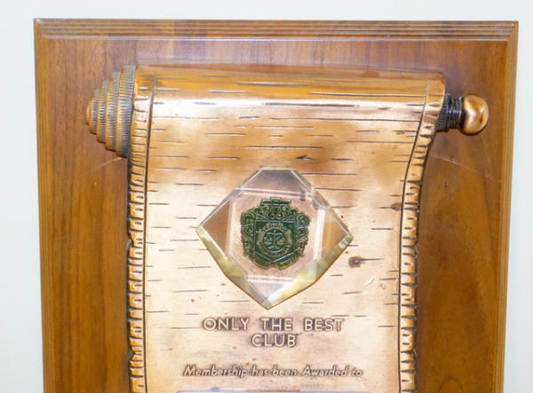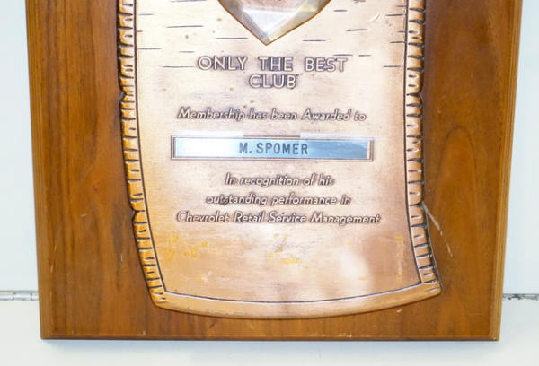 15"x12", wood plaque, heavy metal face, looks good, normal wear