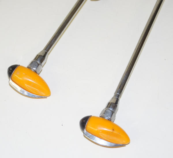 one piece is NOS on card, card is discolored, Curb Feelers are unique with the orange plastic tips, but one has a crack in it, all to go