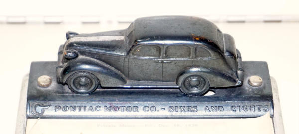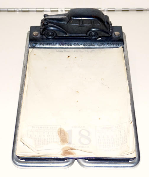 9"x5.5", car is about 4" long, includes partial calendar pad, overall very nice