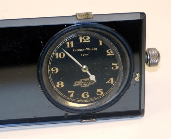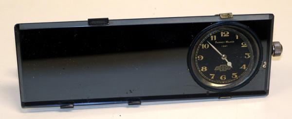 7"x2.5", beveled edge heavy mirror, built in clock with the mounting bracket on the back side, this is a really high-quality, early accessory piece