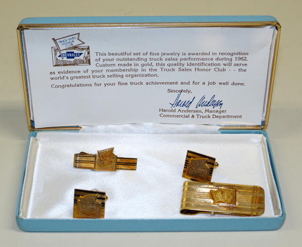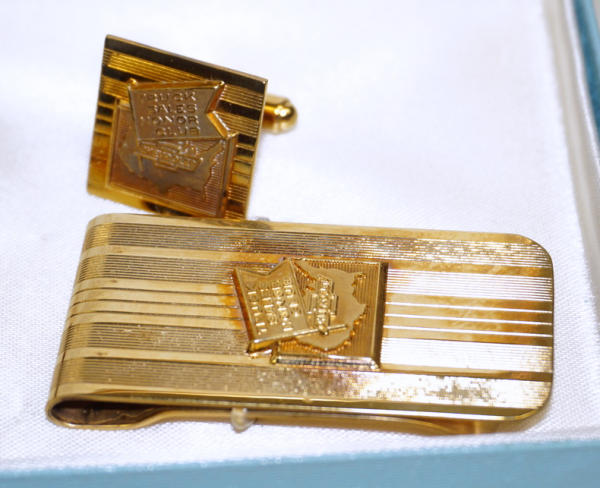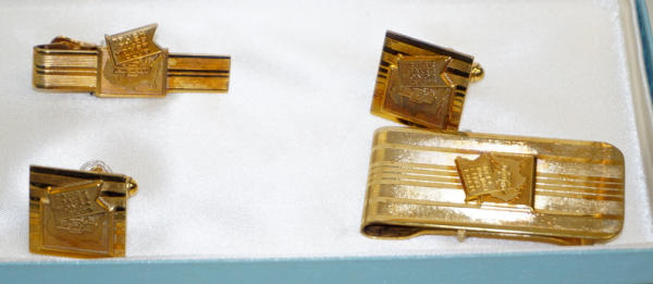 Beautiful set, cuff links, tie bar & money clip, all mint in the box!