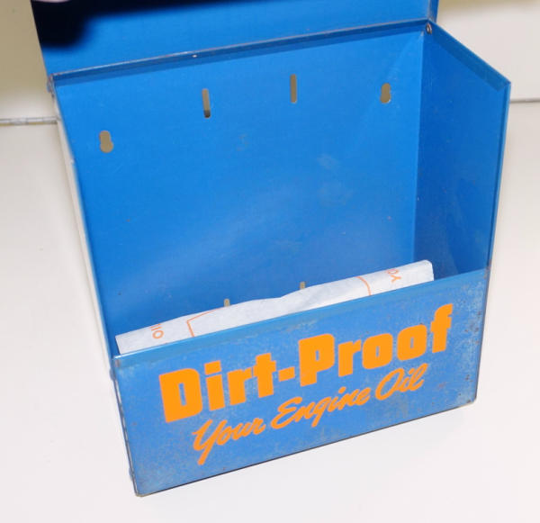 7.5"x7.5", has some paint loss and wear, held paper towels to check your oil