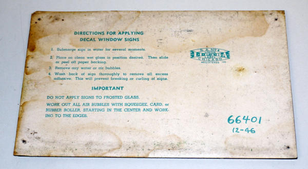 3.75"x6", applied to the back side of a piece of glass, this is a Retail Sales & Use tax license from war-time