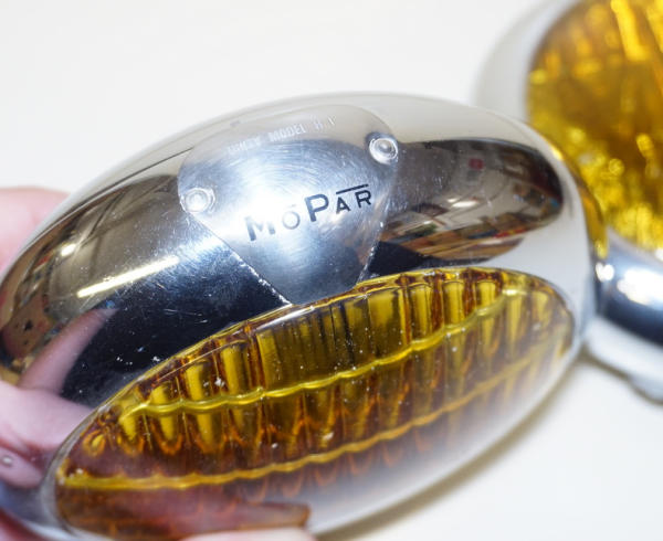 5" across, both look to be near mint and never used, no box or wiring, has "MOPAR" on the top