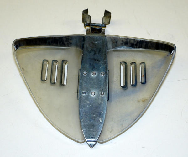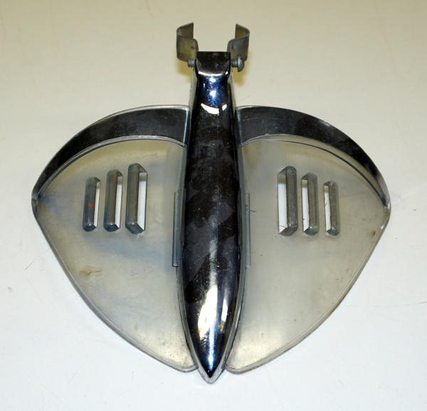 6"x7", plastic and metal, mounted to the hood ornament, some wear, but unique