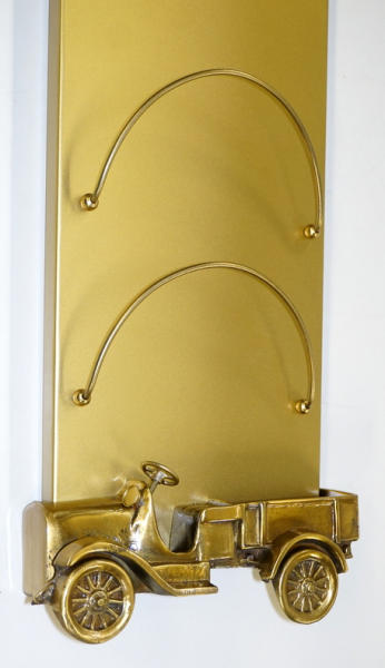 23" tall, 8" wide, antique brass finish, similar to the Chevy award desk clocks and pen holders, not marked Chevy, but Marv told me it was an award from them, mint in the box